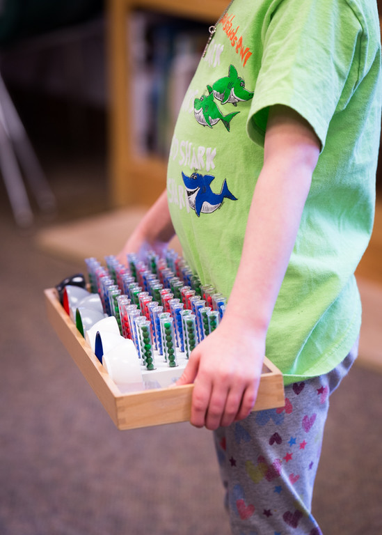 During work time children move about the room freely choosing activities from the shelves that they are interested in and have had a lesson. They may work with the materials as long as they wish. Exploration and repetition are ways in which the children internalize the concepts.